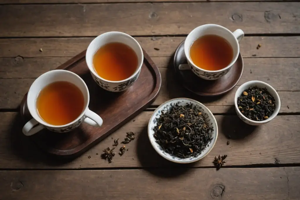 Zelený čaj (napr. sencha) pôsobí často ľahko a rýchlo mizne. Naopak tmavý čaj (napr. shu pu-erh) býva hustejší, „obalí“ ústa a zostáva dlhšie. Chuť môže byť úplne iná, ale rozdiel v tele cítiš okamžite.